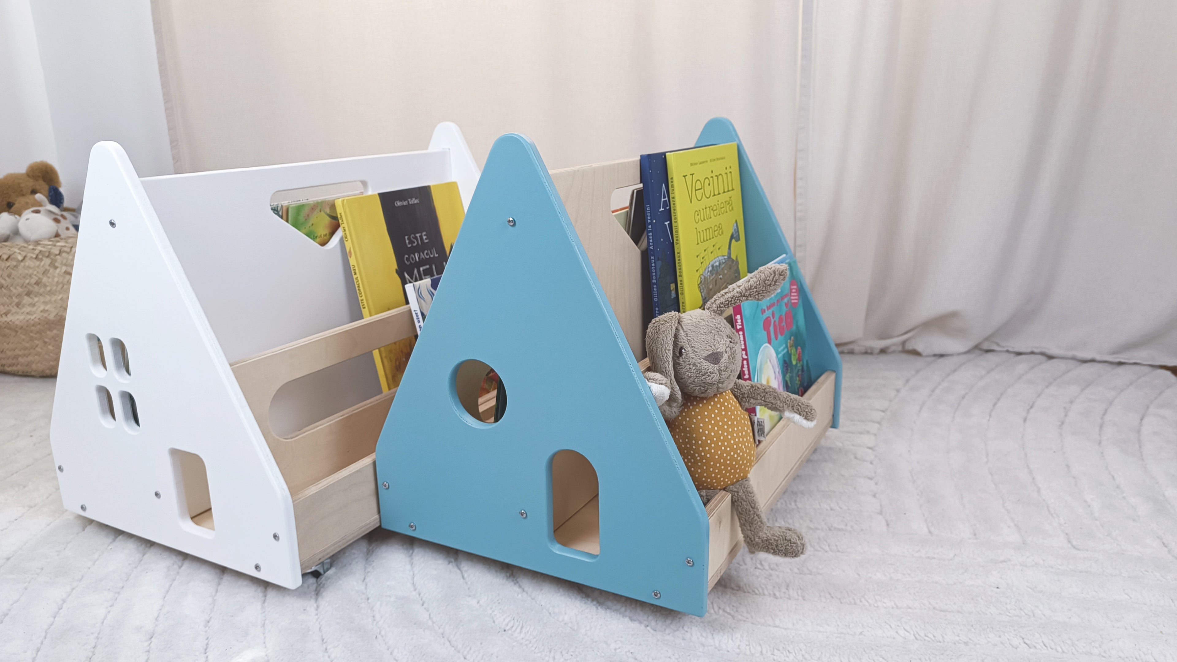 Bibliotecă Montessori cu roți, în formă de căsuță BOOKY